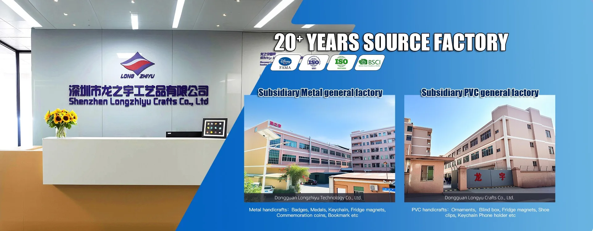 Shenzhen Longzhiyu Crafts Co., Ltd.’s flagship metal factory — Dongguan Longzhiyu Technology Co., Ltd. — is a powerful manufacturer specializing in the production of badges, medals, coins, bookmarks, metal keychains, and other handicrafts.